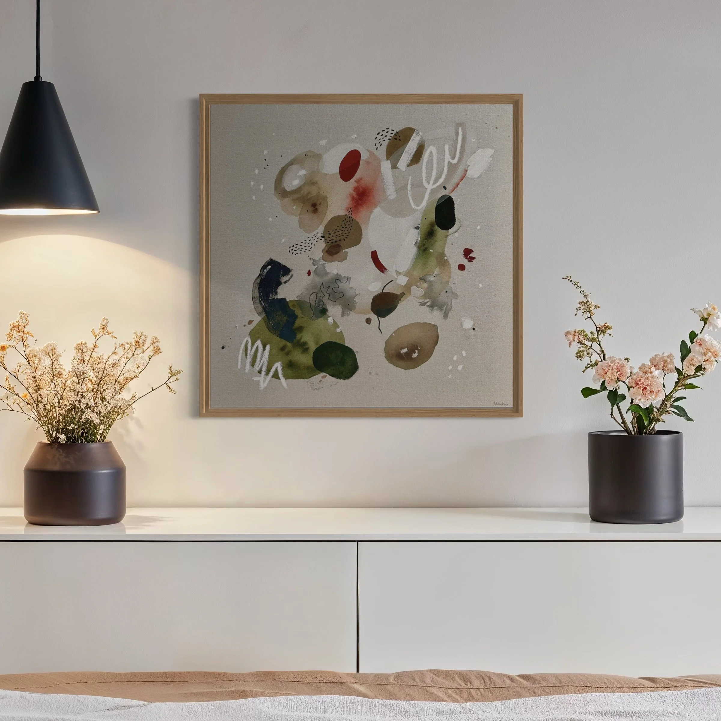 Gemalt auf einer sorgfältig gespannten Baumwoll-Leinwand, präsentiert sich das Werk auf einem stabilen, dabei außergewöhnlich leichten Abachi-Holzrahmen – naturbelassen, edel und in seiner Zurückhaltung perfekt auf das Werk abgestimmt.